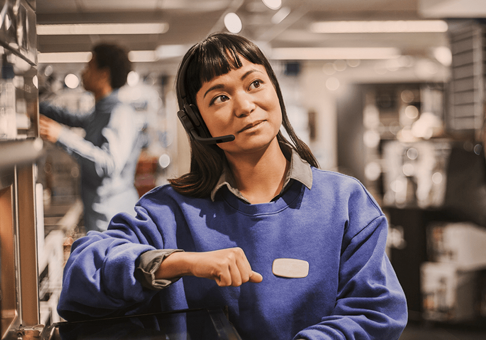 The same award-winning quality you’d expect from any Jabra device, now optimized for retail environments. Jabra Perform headsets feature industry-leading noise cancellation, so associates can communicate clearly, access essential information, and use voice-led workflows – however loud the background.