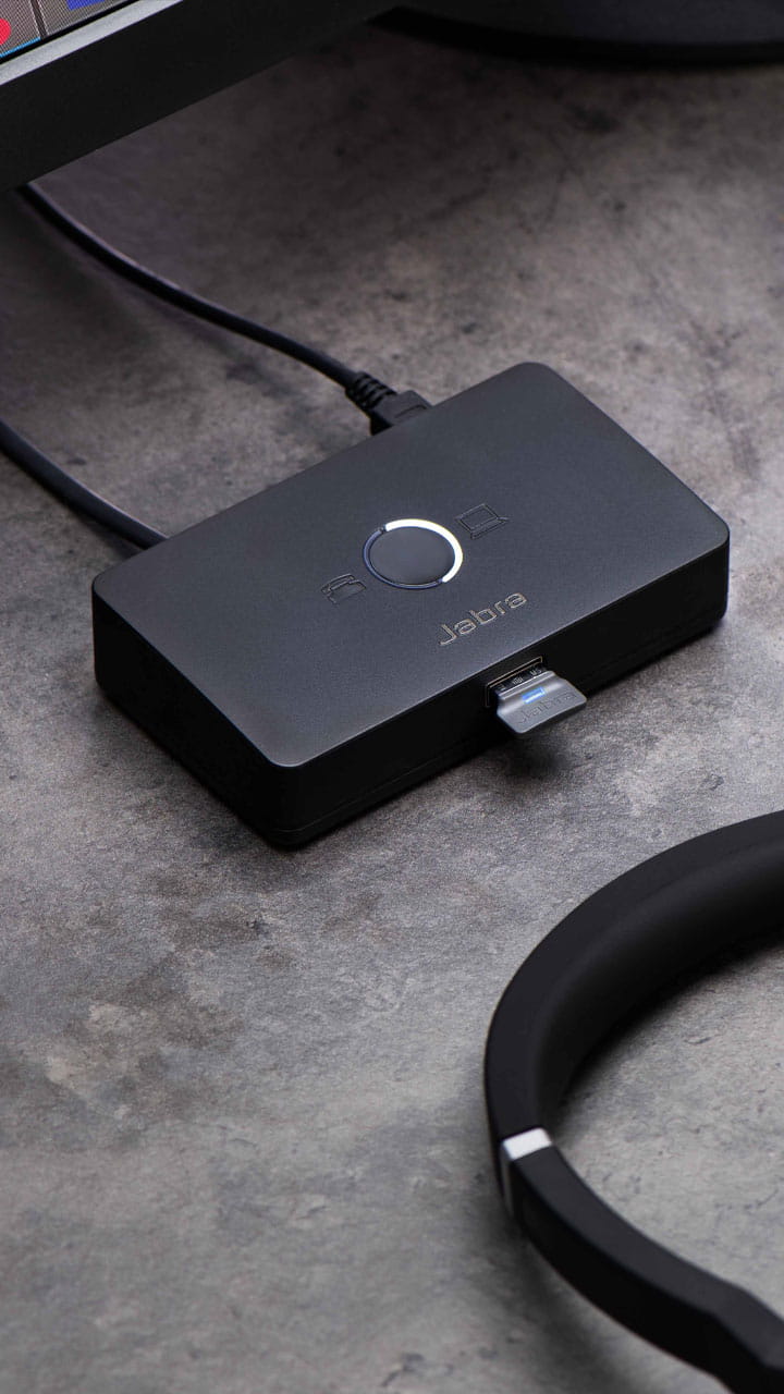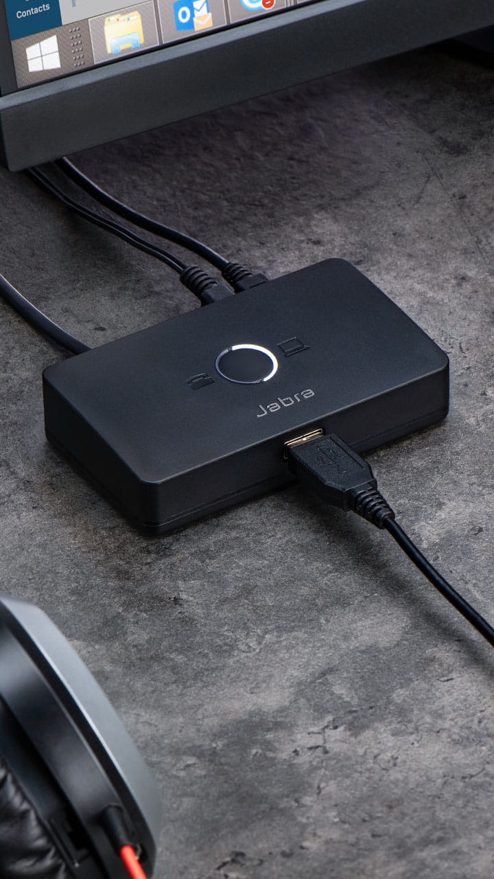 The Jabra Link 950 is simple to set up and has a small, unobtrusive footprint on the desktop. To connect to your computer, use the USB-A or USB-C cables that are both supplied. To connect to your deskphone, use the cables included. Easy call management enables you to seamlessly switch between phone devices at the touch of a button. Incoming calls are automatically directed to the phone receiving the call. Central management of USB headsets is easy using Jabra Xpress.