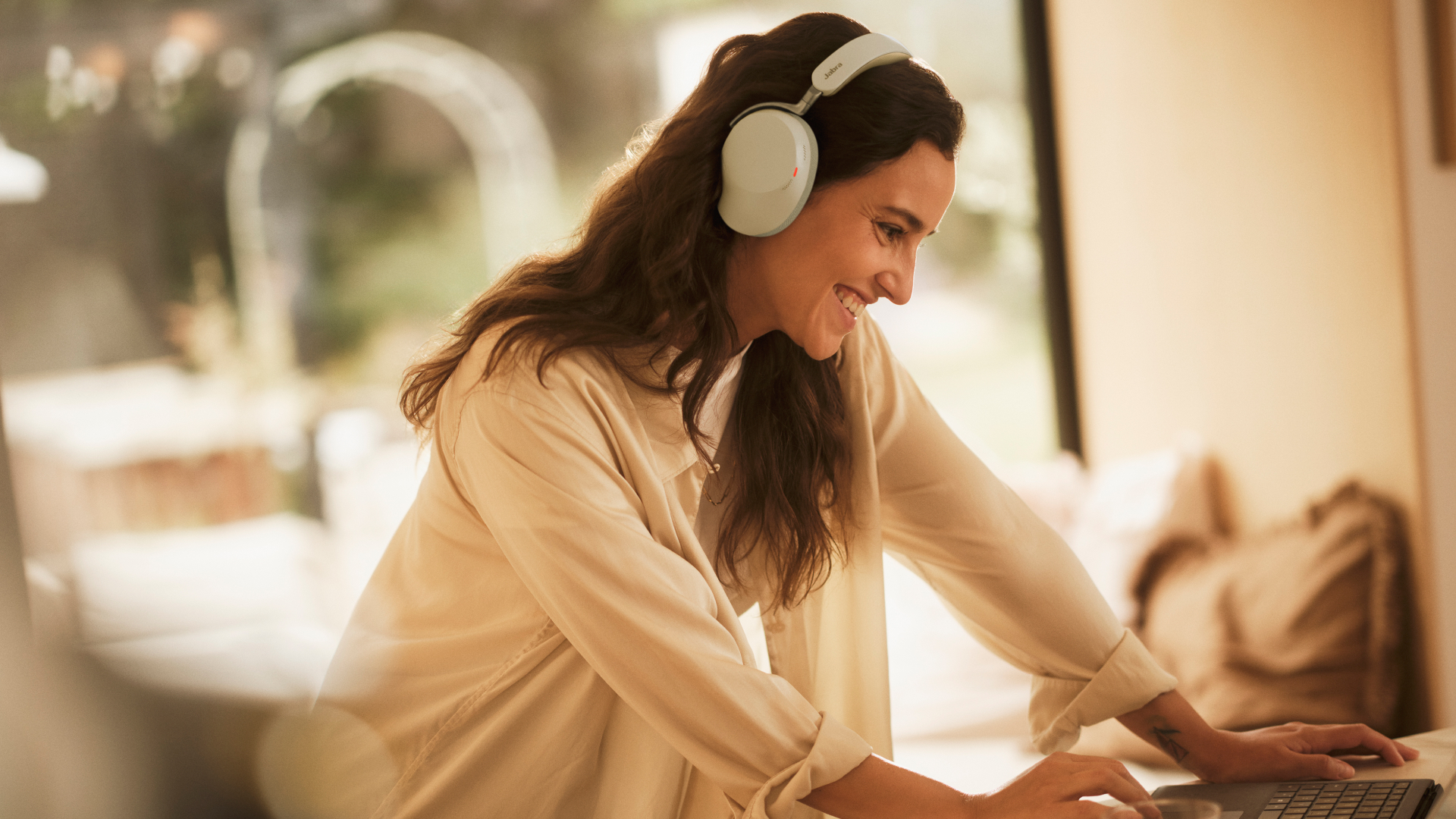 Ya no tendrá que elegir entre un rendimiento profesional y un diseño bonito. Evolve3 85 tiene ambas cosas. Hasta un 35% más fino que los modelos anteriores y el más ligero de su clase, cuenta con almohadillas transpirables para confort durante todo el día y un audio avanzado que capta su voz con claridad sin necesidad de un brazo de micrófono.