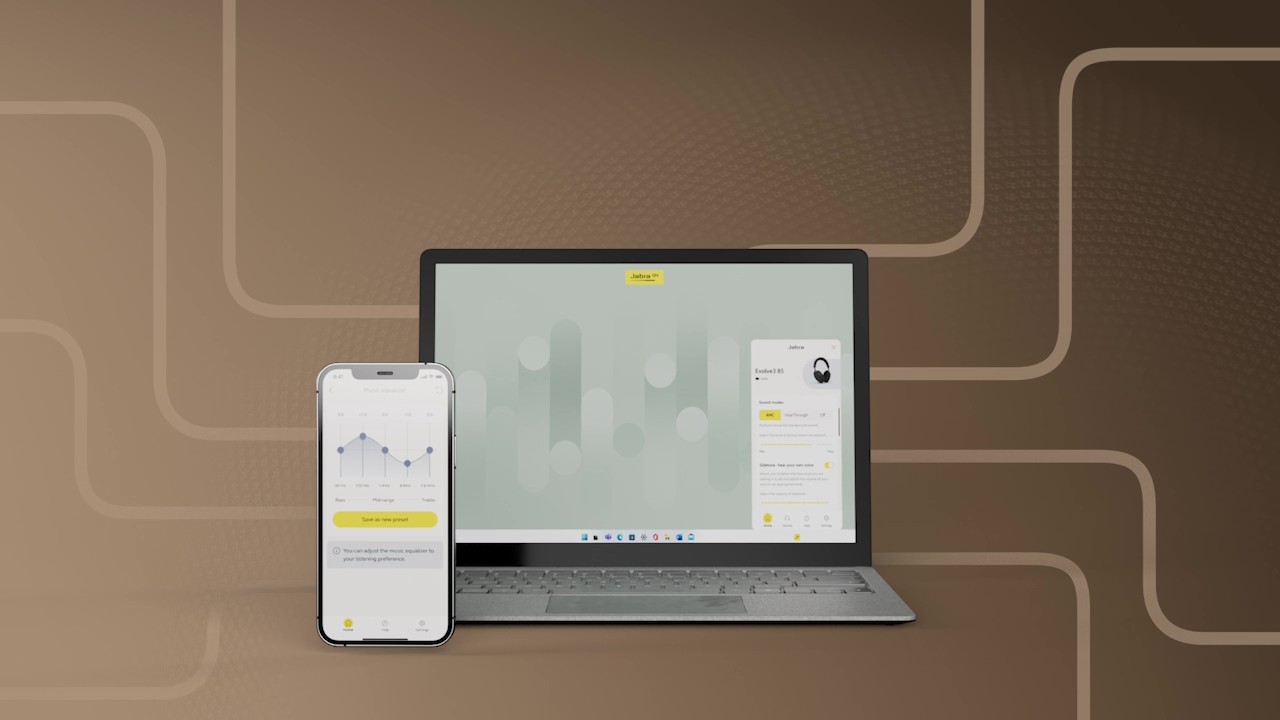*Evolve3 75/85 compatible en su lanzamiento con Jabra Plus Management (para administradores de TI) y la aplicación de móvil Jabra Plus (para usuarios individuales), Jabra Direct y Jabra Xpress. Transición a la aplicación de escritorio Jabra Plus para los usuarios individuales una vez que esté disponible.