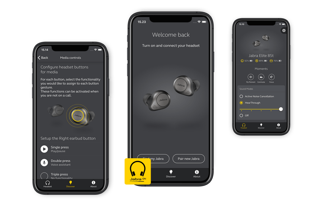 Descargue la aplicación Jabra Sound+ para liberar todo el potencial de sus auriculares, incluido el acceso a funciones exclusivas disponibles solo a través de la aplicación, y las actualizaciones de firmware más recientes para ayudar a mantener sus auriculares en su mejor rendimiento.