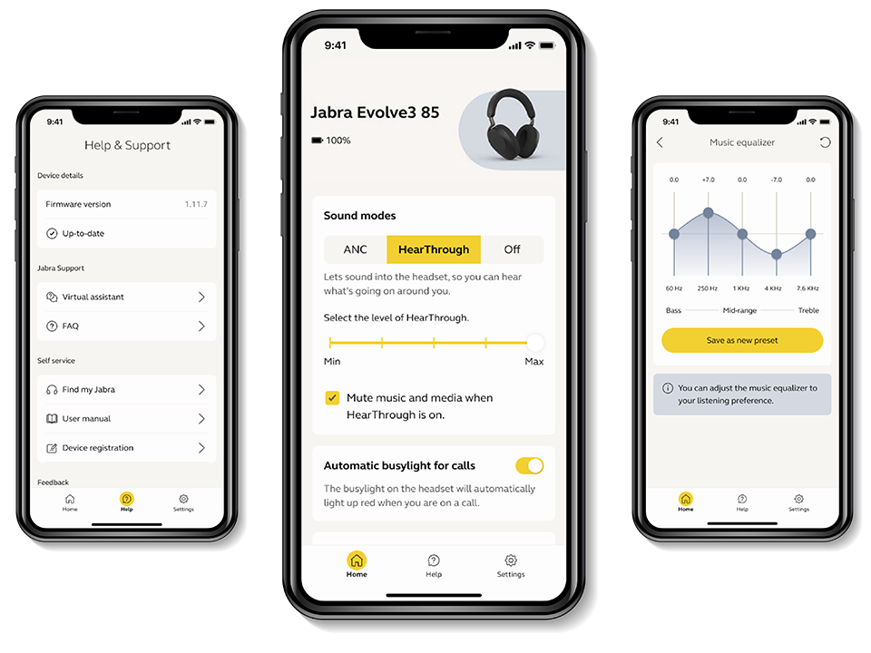 Tiene el dispositivo Jabra. Ahora, hágalo verdaderamente suyo con la nueva aplicación móvil Jabra Plus. Con una experiencia de usuario intuitiva, un diseño nuevo y seguridad integrada, la aplicación móvil Jabra Plus facilita la personalización del sonido, la obtención de las últimas actualizaciones de firmware y el desbloqueo de todo el potencial del dispositivo desde el bolsillo.