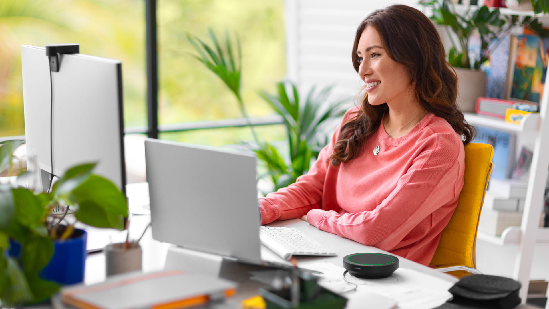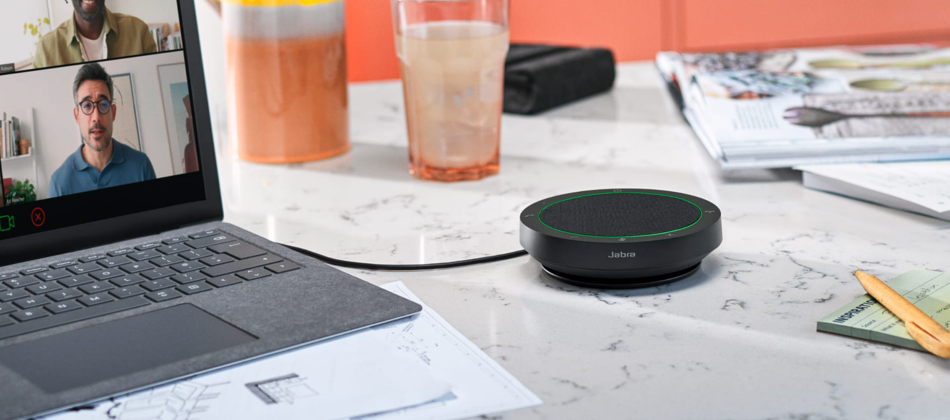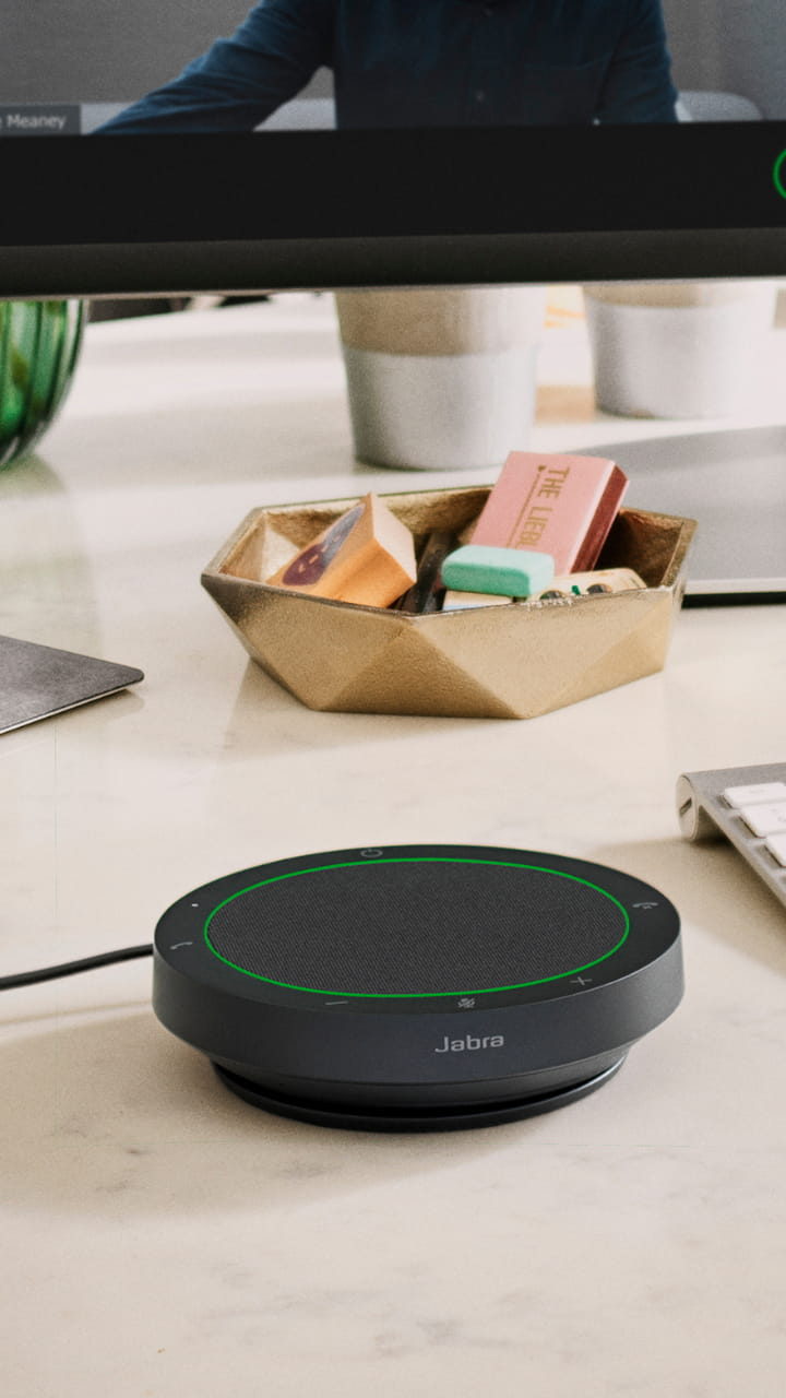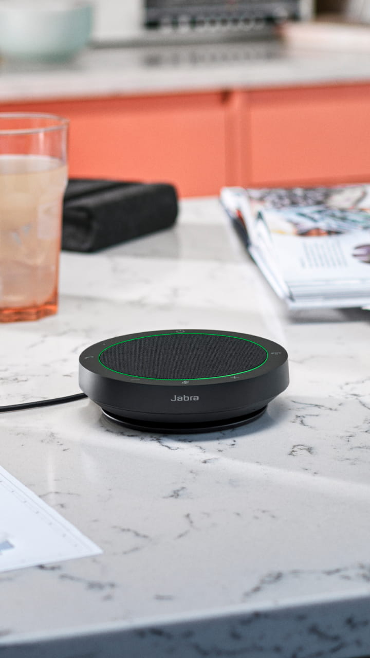 Dans la cuisine, dans votre bureau ou même dans le jardin... Si votre speakerphone est compatible avec votre plateforme de réunion virtuelle, vous pouvez collaborer où bon vous semble.