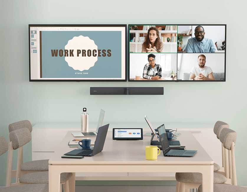 Rozwiązanie wykorzystuje potężną moc AI, aby dynamicznie dostosować i kadrować widok uczestników spotkania w pomieszczeniu w celu zapewnienia optymalnej współpracy.