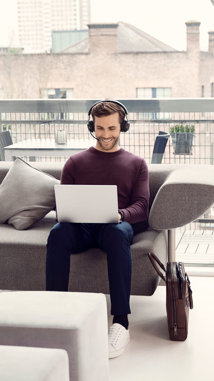 Zaprojektowane dla pełnej elastyczności. Pracuj, gdzie chcesz, z bezprzewodowym zestawem słuchawkowym zapewniającym doskonałą jakość dźwięku.