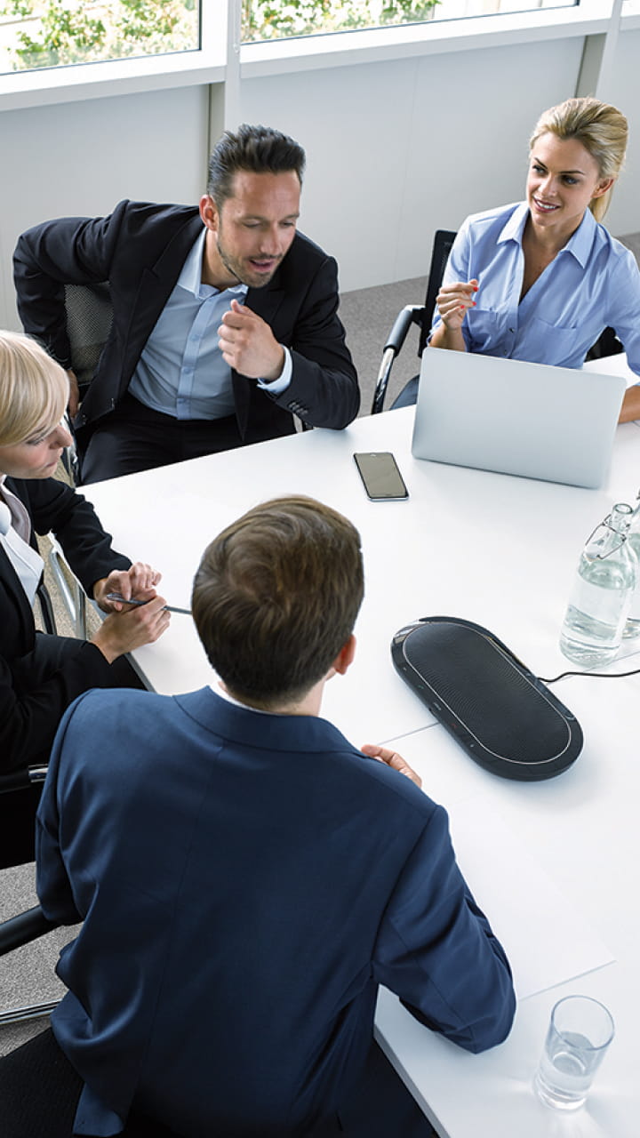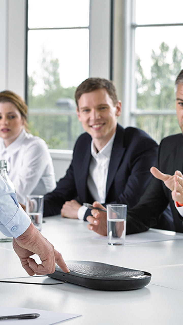 Szybsze rozpoczynanie spotkań dzięki połączeniu za pomocą USB, Bluetooth® lub złącza 3,5 mm do laptopa lub smartfona.