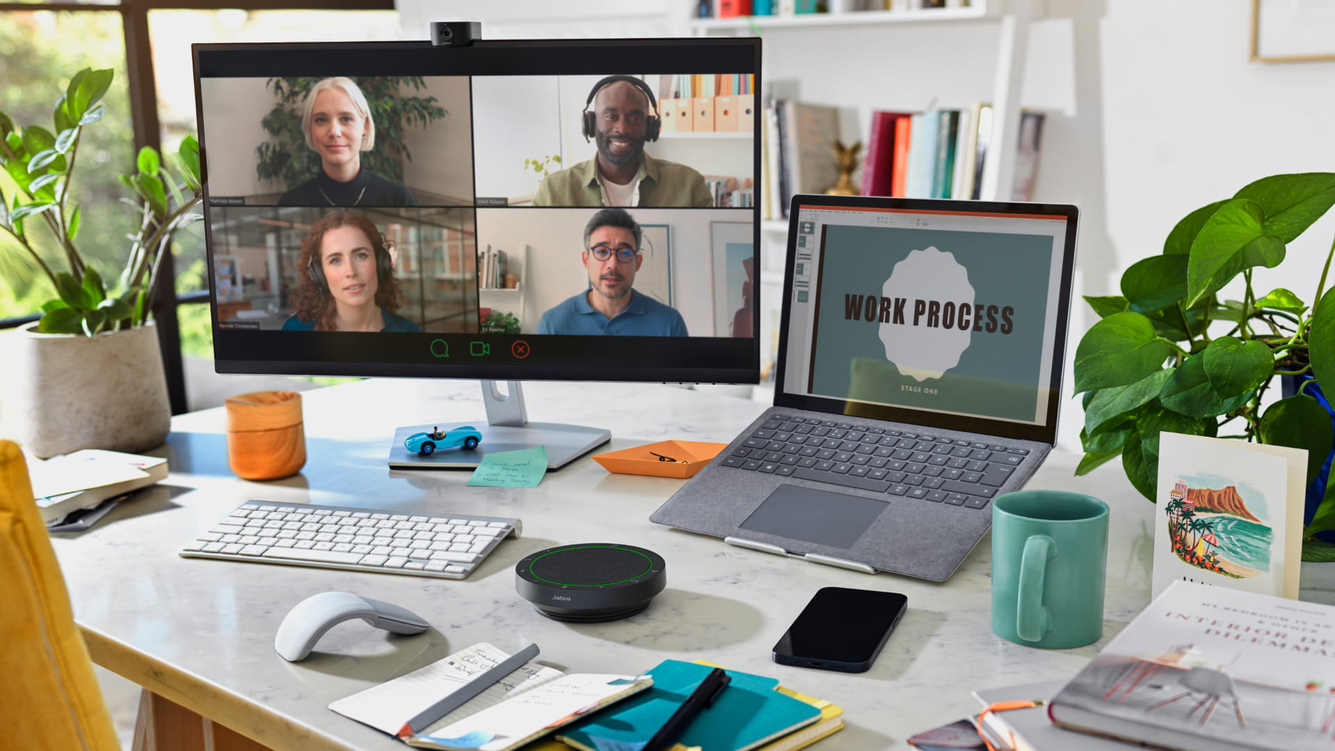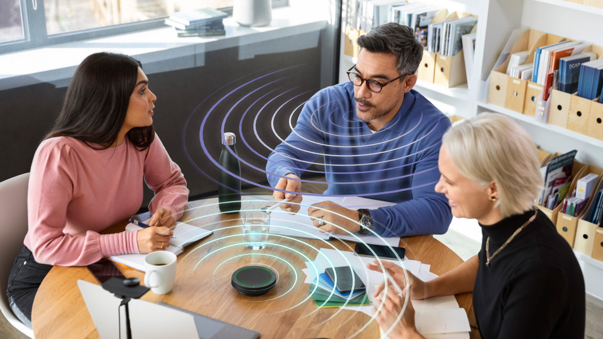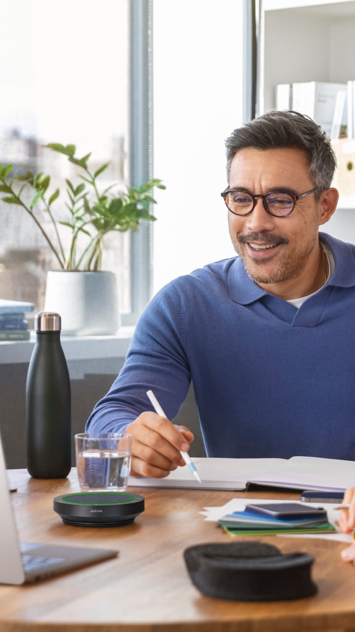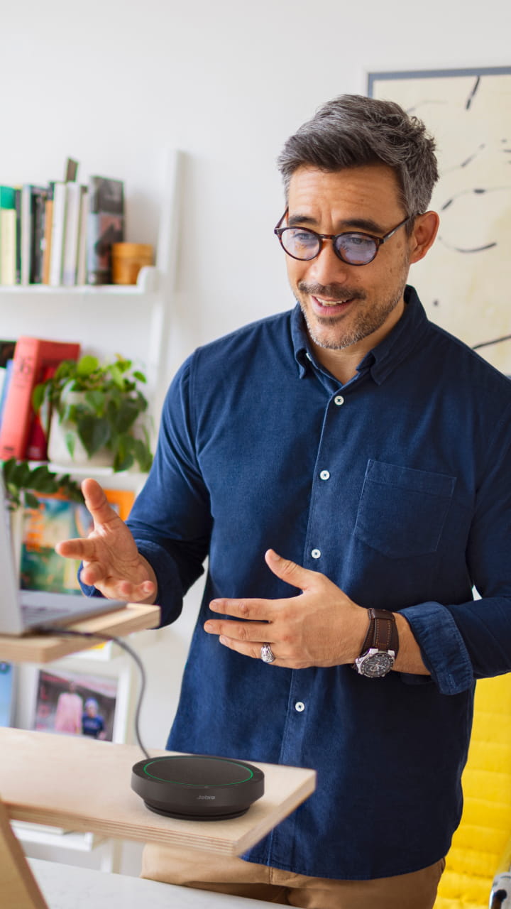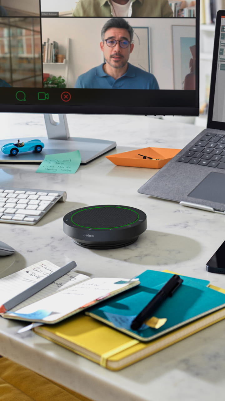 Wystarczy podłączyć zestaw głośnomówiący i możesz od razu dołączyć do spotkania. A dla użytkowników, którzy lubią wybór, mamy dwie opcje. Możesz połączyć się bezpośrednio za pomocą przewodu USB lub bezprzewodowo i korzystać nawet z 12 godzin pracy na baterii.