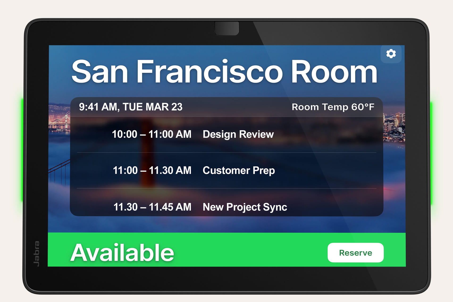 En pekskärm och en grön indikator visar om rummet är tillgängligt